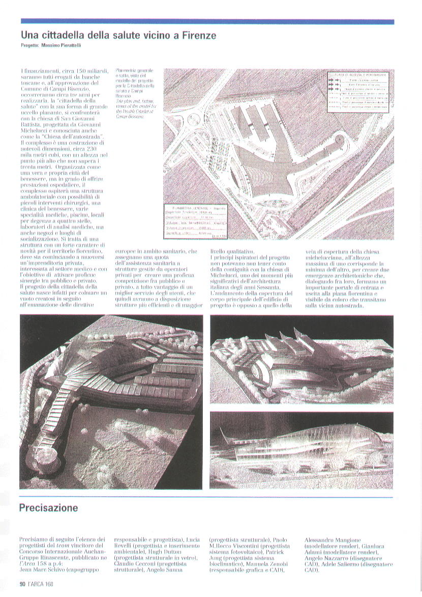 Article in ARCA 160 CITTADELLA DELLA SALUTE ARCA n.160 CITTADELLA DELLA SALUTE: Articolo riguardante il progetto di un ospedale privata nel comune di Campi Bisenzio denominato Cittadella della Salute Tags: Arca architettura, architetto Firenze, architetto massimo, architetto pierattelli, Campi Bisenzio, Cittadella della Salute, Ospedale privato, Rivista Arca
