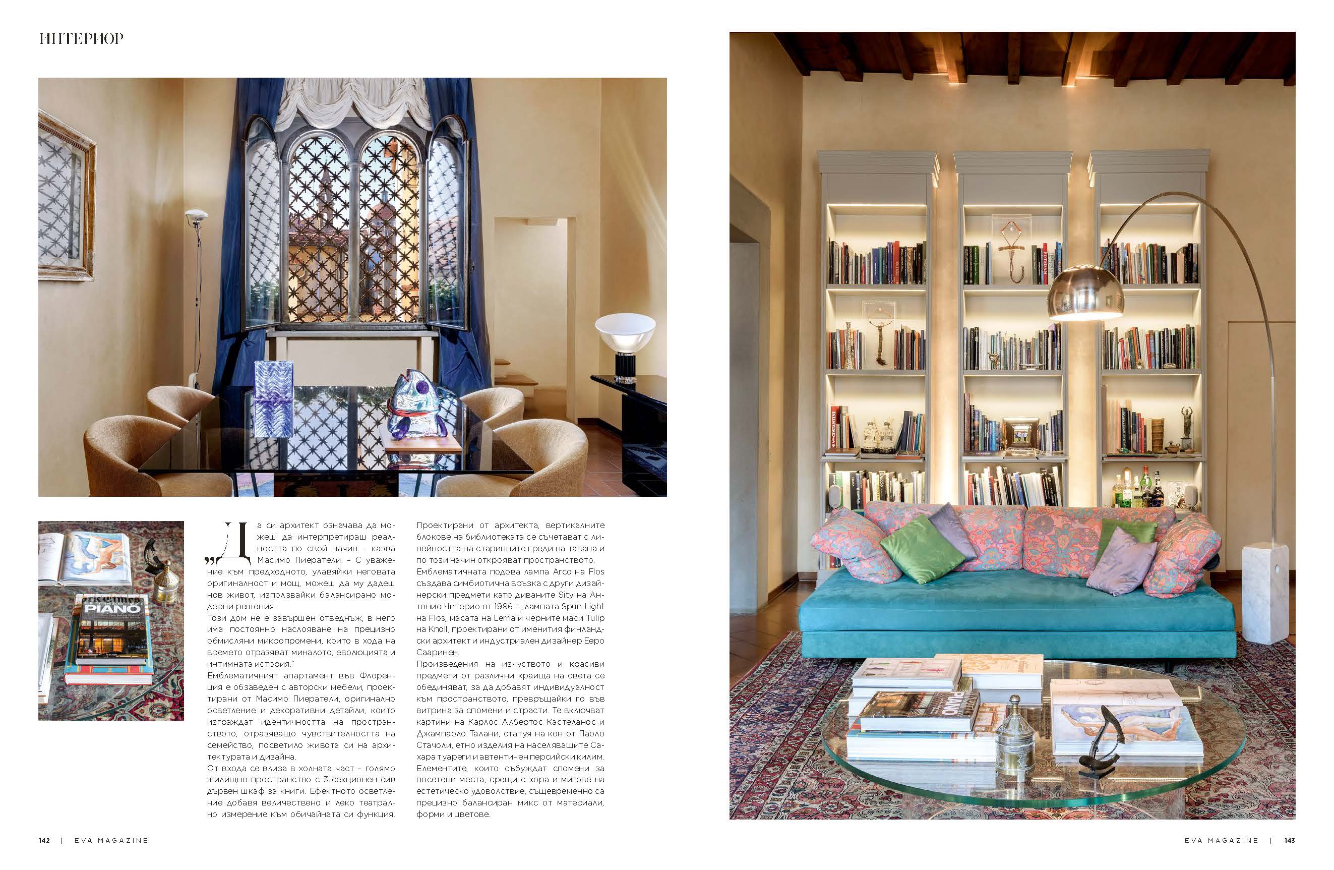 EVA MAGAZINE, the leading lifestyle and fashion magazine in Bulgaria, dedicates a 5-page article to the Massimo Pierattelli’s house.
