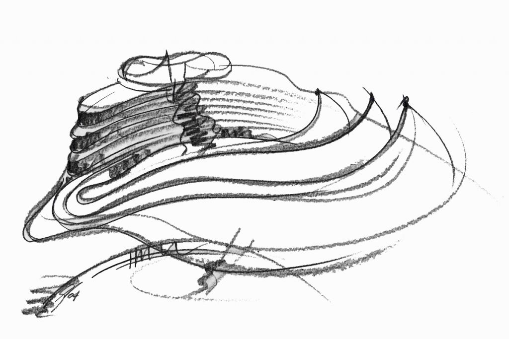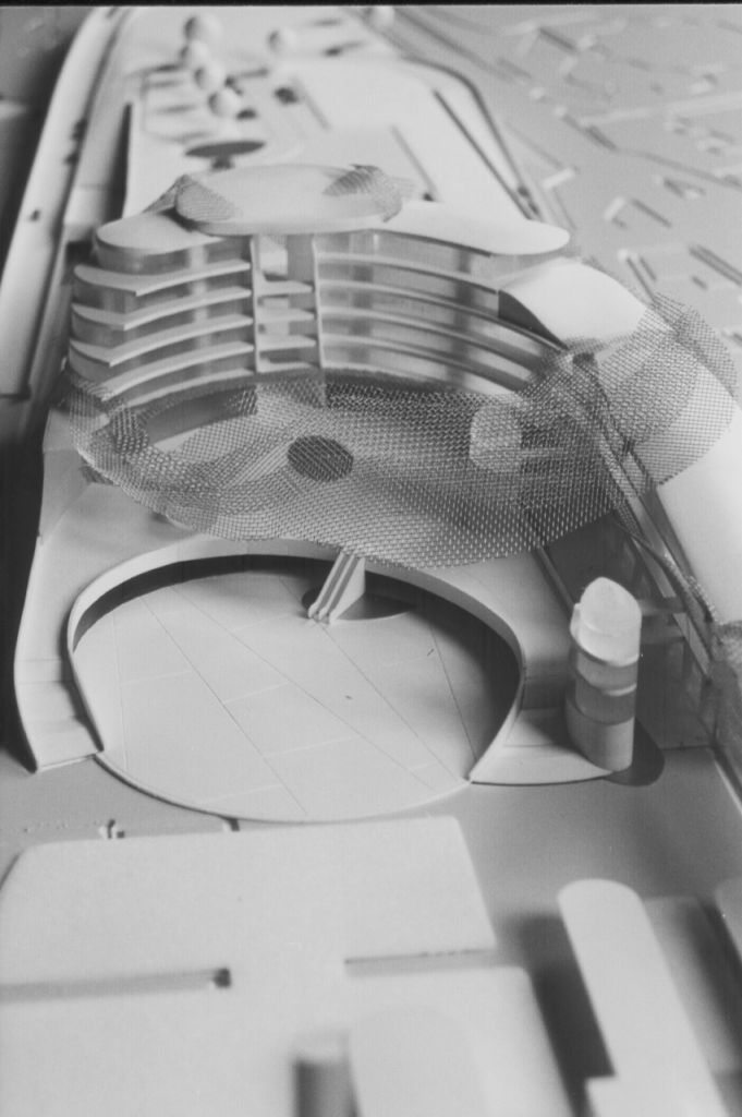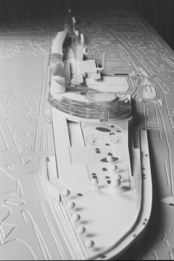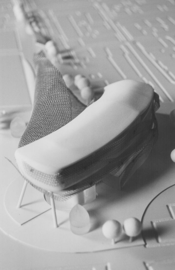 The necessity of Montecatini Terme Municipalty to join together the two parts of the town which had been separated by the railways, will be satisfied by landfilling the railway. The project aims to be an environmental rehabilitation’s and a real estate development’s element intended to enhance the new free areas. Observing the topography and considering that Montecatini is a world-wide famous spa town born thanks to the water, the projects has been thought as if a natural disaster, “a typhoon”, destroyed all the existing buildings. Later the water and the wind, with their natural movements, created a building complex made by glass covers and steel meshes generating a sequence of architectural elements.