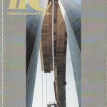 The floating wave, hooked up by metal caves to the column-pillars, is broken in correspondence of the offices where a lowered arch is crowned by a level of regular openings.