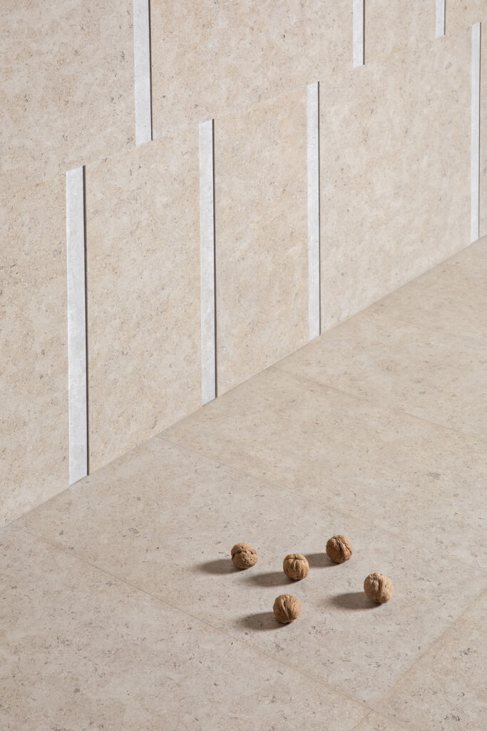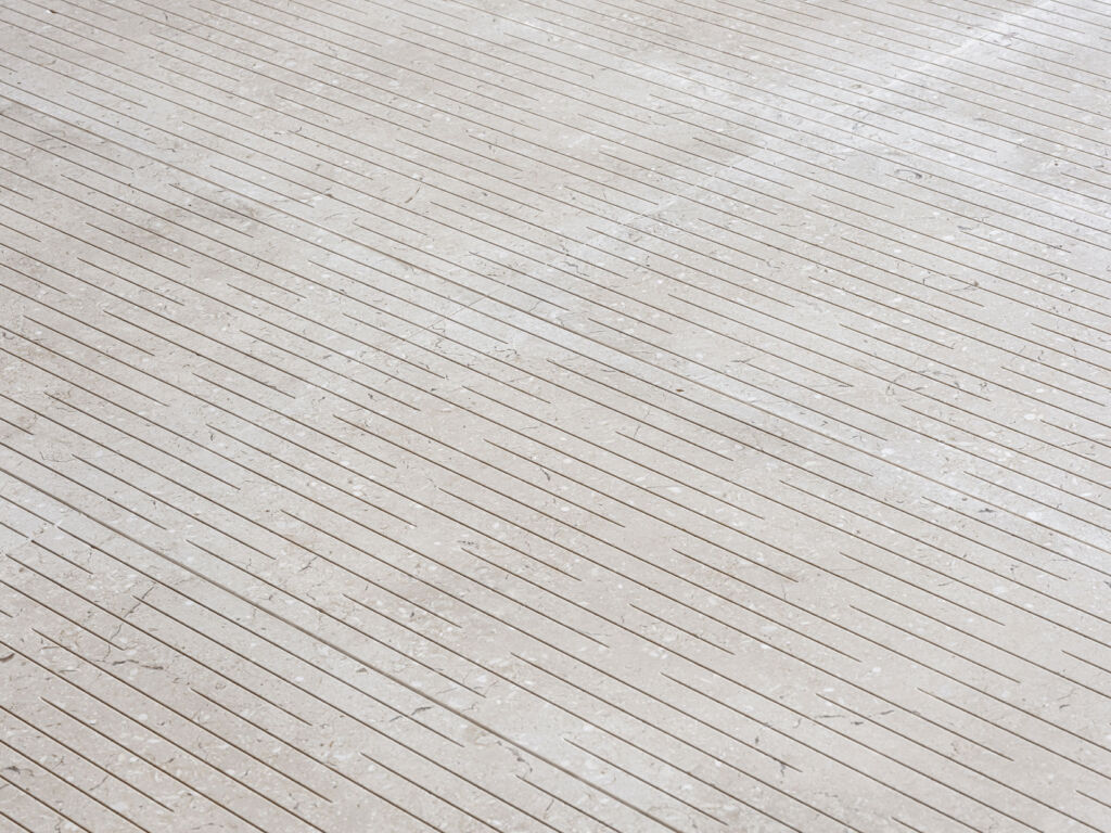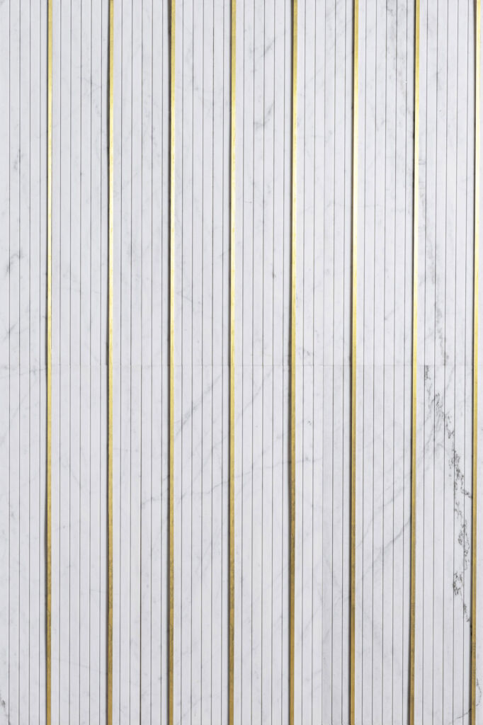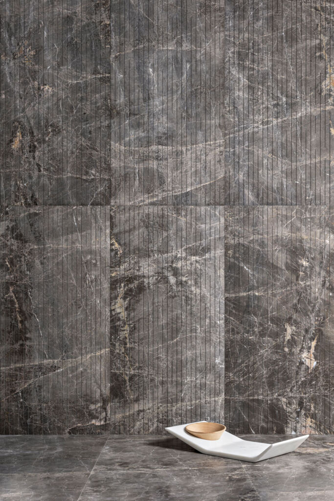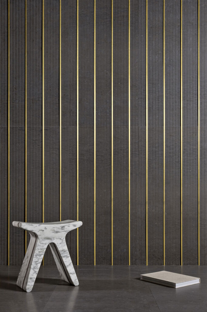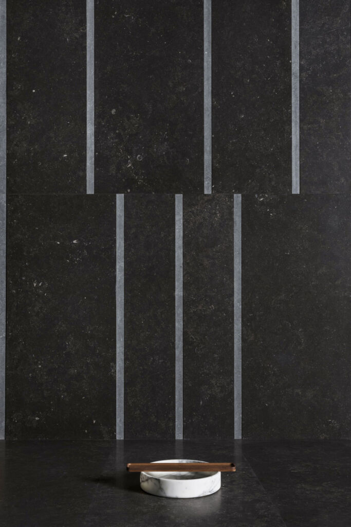 The grooves of Tail are orderly, architectural, to be completed and filled with metal inserts that embellish the material. In the strokes of Dash-Dot, discontinuous milling characterized by palpable pauses and geometric traces refer to the idea of a precise and artisanal manufacturing. On the other hand, essentiality and clean lines emerge, step by step, in Step where, to better capture the light, the large part of the slab is smooth and soft to the touch, while the smaller part is rough and rough.