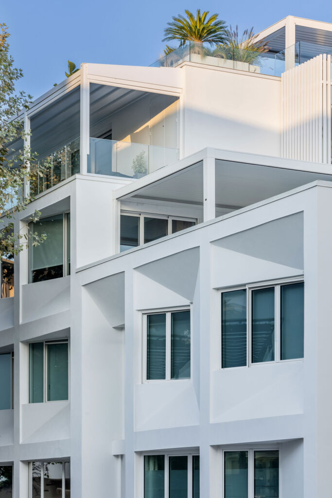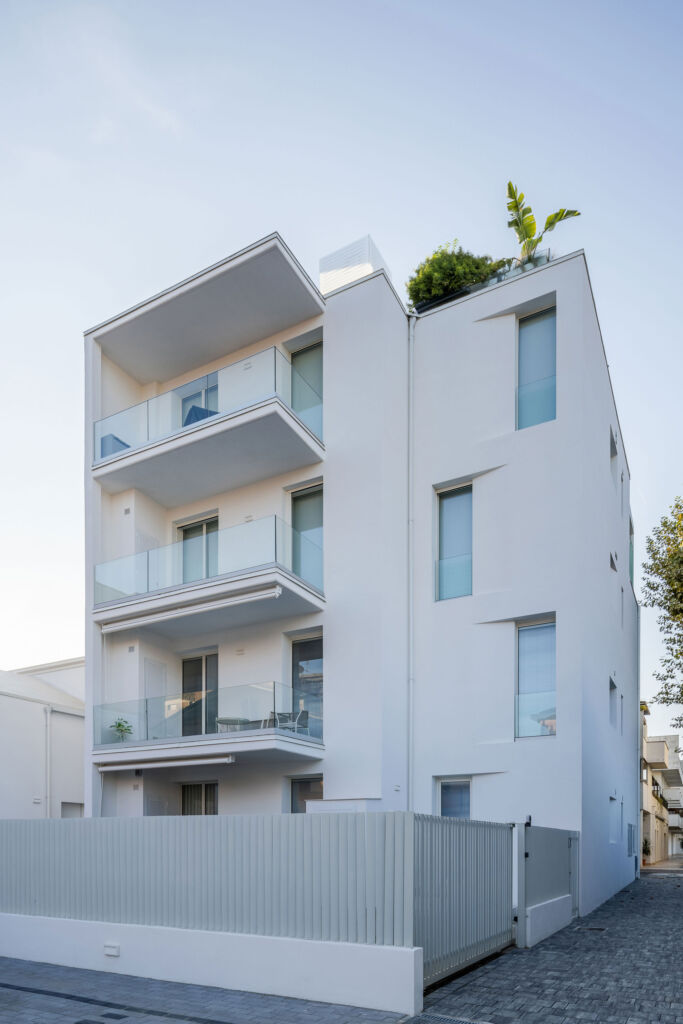 Il nuovo complesso residenziale ospita 10 appartamenti privati, che spaziano da 70 mq a 140 mq: le abitazioni con vista mare si caratterizzano per gli affacci ruotati che, oltre a favorire la visuale, ottimizzano l’efficienza termica dell’edificio grazie a un minor irraggiamento diretto.
