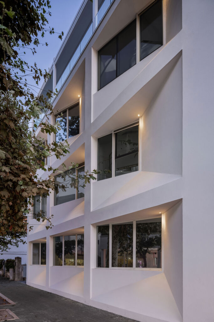 07 Aprile, 2020Due edifici ad uso ricettivo, costruiti a cavallo tra gli anni ‘40 e ‘50, vengono riconvertiti ad uso residenziale tramite un progetto di ristrutturazione edilizia che ne ridefinisce i prospetti e riorganizza gli interni. Le facciate del complesso diventano lo spazio per creare con luci e geometrie un profilo di facciata inedito e dinamico, con prospetti in continuo divenire caratterizzati da aggetti, rientranze e strombature.