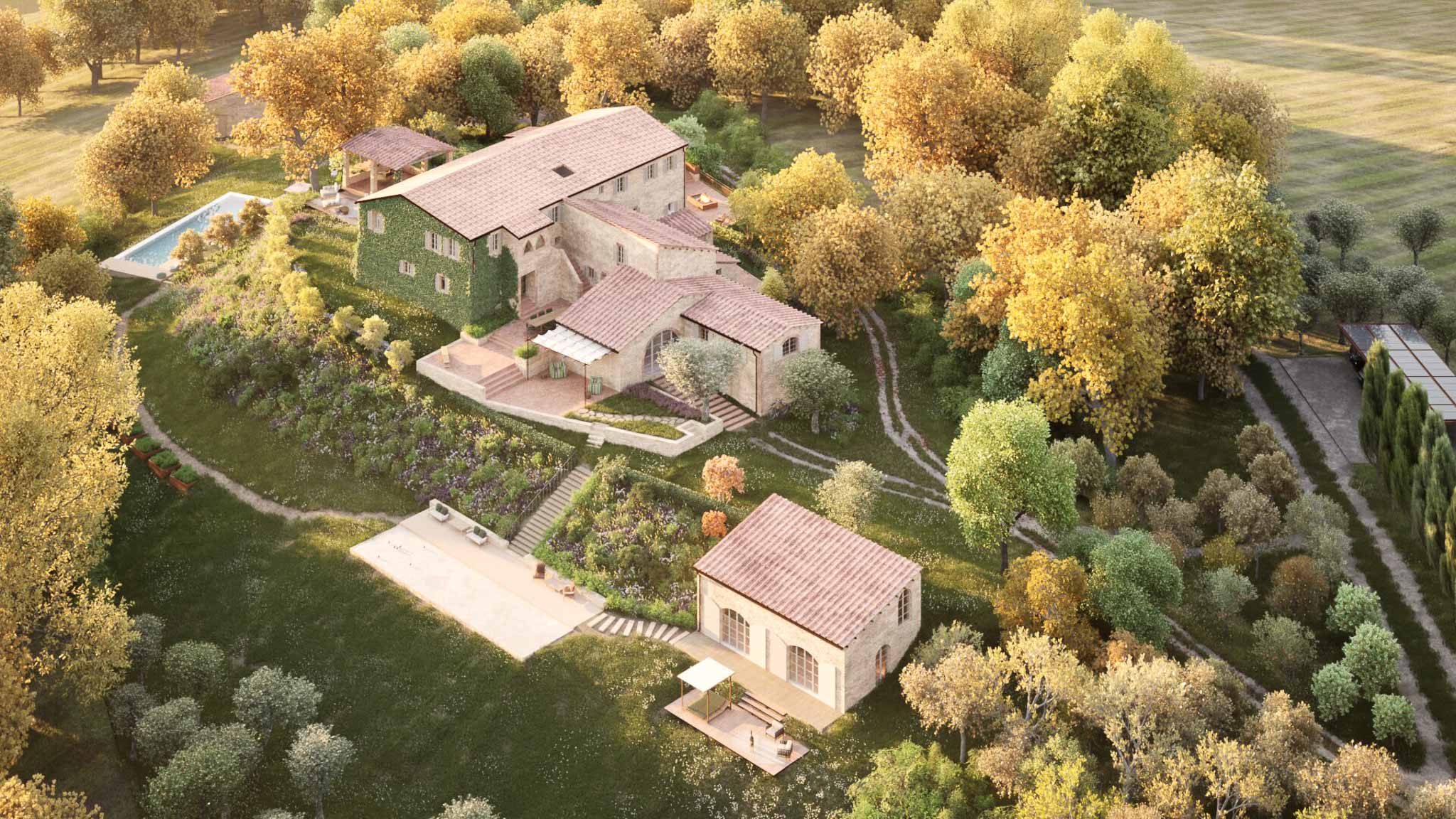 Progetto di ristrutturazione edilizia, restauro, landscaping e interior design